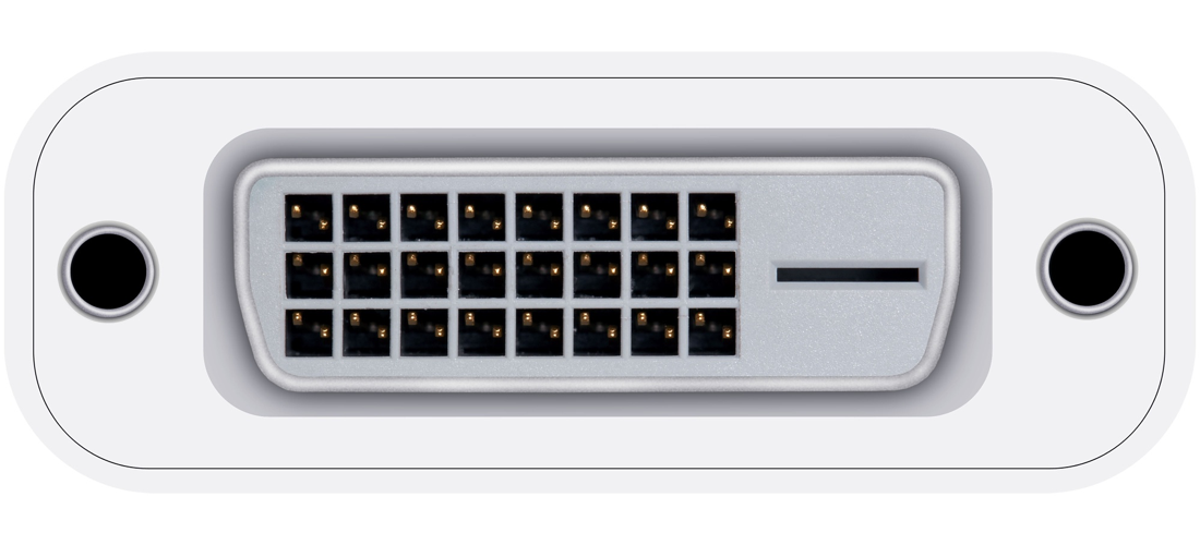 Fontos tudni, hogy ez a kapcsolat teljesen digitális (DVI-D). Vagyis az olyan olcsó monitorokkal, amelyek a DVI kapu négy analóg lábát alkalmazzák, ez az átalakító nem lesz használható! Az a típusú, úgynevezett DVI-I csatlakozó fizikailag sem kapcsolható össze ezzel az adapterrel. Analóg kimenetre az Apple Mini DisplayPort VGA adapterét kell használni.