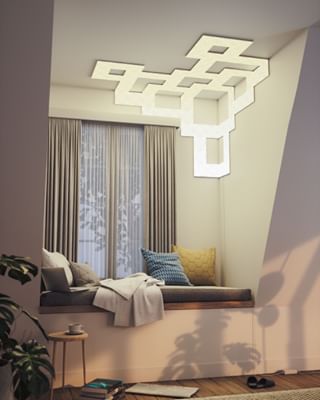 A Nanoleaf Canvas Smarter Kit teret enged a kreativitásunknak: a négyzetlapokat a csomagban lévő kis csatlakozó lapkák segítségével összefűzhetjük, és sokféle alakzatot létrehozhatunk a rendelkezésre álló falfelület méret és forma paramétereihez igazodva. Sőt, különálló csomagok segítségével akár bővíthetjük is a szettet, és egy központi egységre akár 25 darab világító négyzetet fűzhetünk. A Nanoleaf Canvas Flex Linkers segítségével akár a fal sarkai sem okoznak kihívást, mert elfordulhatunk a technikával, követve az éleket.