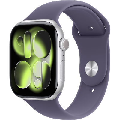 Apple Watch Series 11 (Cellular) 46 mm ezüst alumínium tok ködös lila sportszíjjal M/L