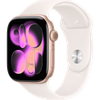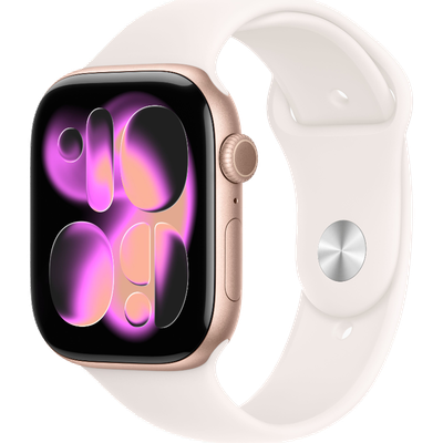 Apple Watch Series 11 GPS + Cellular, 46 mm-es aranyszínű titántok, lágy rózsaszín sportszíj – M/L