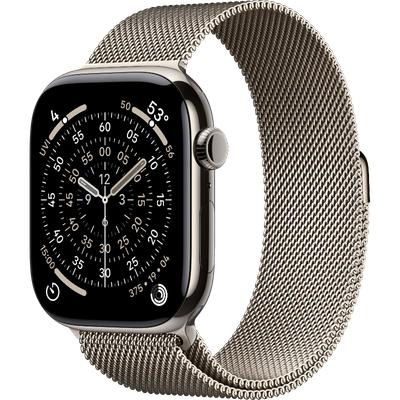 Apple Watch Series 11 GPS + Cellular, 46 mm-es natúr titántok, natúr milánói szíj - S/M
