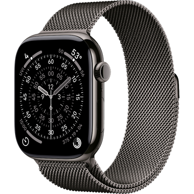 Apple Watch Series 11 GPS + Cellular, 46 mm-es palaszürke titántok, palaszürke milánói szíj - M/L