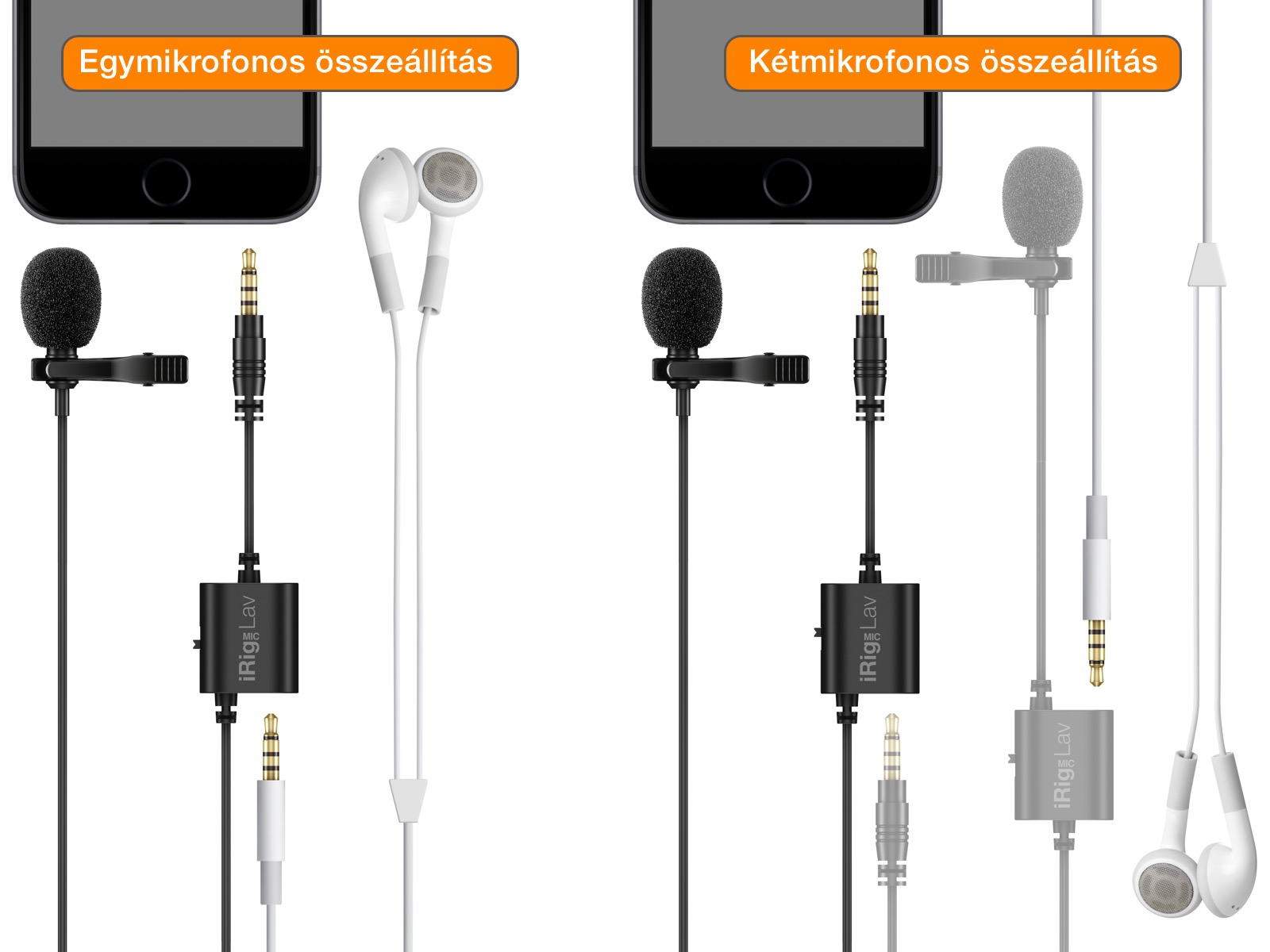 • 3,5 milliméteres négyeres minijack (TRRS) csatlakozó két iRig Mic Lav összekötésére