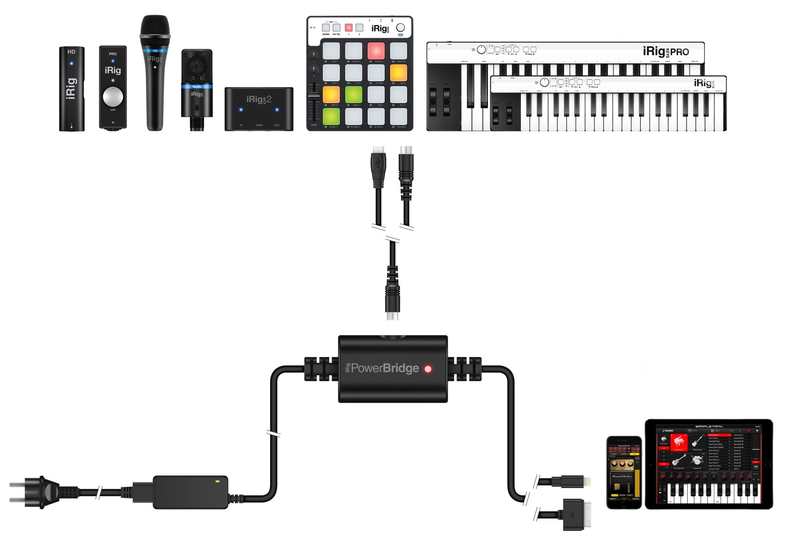 Az iRig PowerBridge az IK Multimedia iRig termékvonalának digitális elemeihez lett megalkotva, azaz minden olyan Lightningcsatlakozós eszközzel együtt működnek, amely rendelkezik mikró-USB vagy MIDI-DIN portokkal. Az egységen egy nagy méretű piros LED található, amely jelzi, hogy zajlik-e töltés.