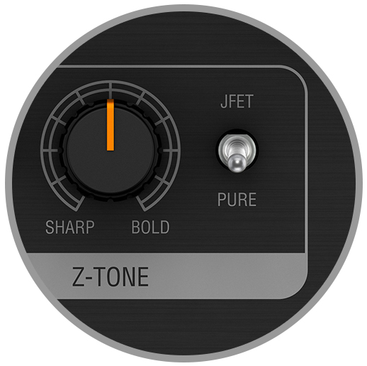 A Z-TONE vezérlés impedancia többletével nagyban fokozhatjuk a jel minőségét gitár és basszusgitár használata esetén, amely a szoftveres feldolgozás végeredményében is érezhető.