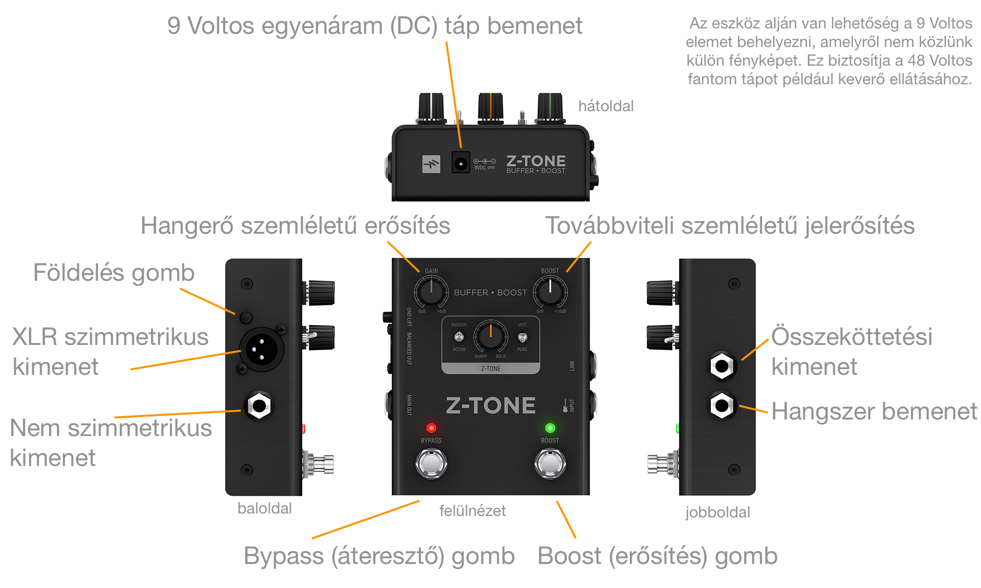A Z-TONE Buffer Boost pedál célja, hogy az effektpedálok használatával színesíteni kívánt gitár jelét megfelelő szintre erősítve tudja továbbítani, hogy ezáltal akár több ilyen eszközt is sorba tudjunk kapcsolni akár a színpadon, akár a stúdióban, de otthoni hobbi felszerelésünk használata közben is.